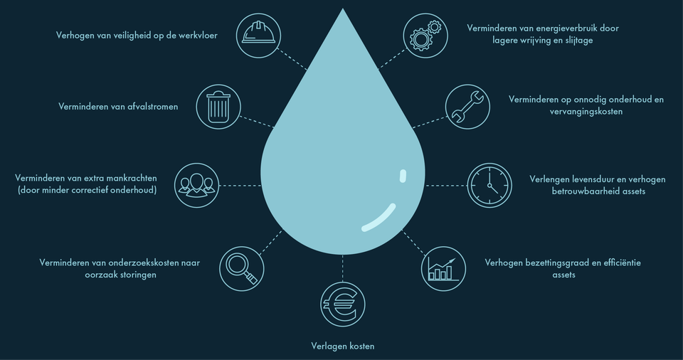 - Verminderen van energieverbruik door lagere wrijving en slijtage.